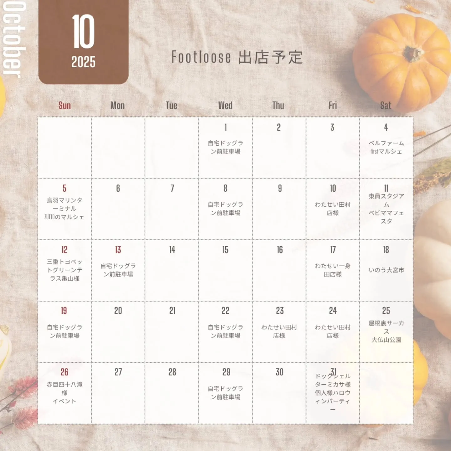 10月出店予定追加いたしました(^^♪ 2025/10/06 10月出店予定追加いたしました(^^♪ ご確認の上ご都合よろしければ是非お立ち寄り下さいませ(^^♪ 皆様のご来店笑顔でお待ちしております😊