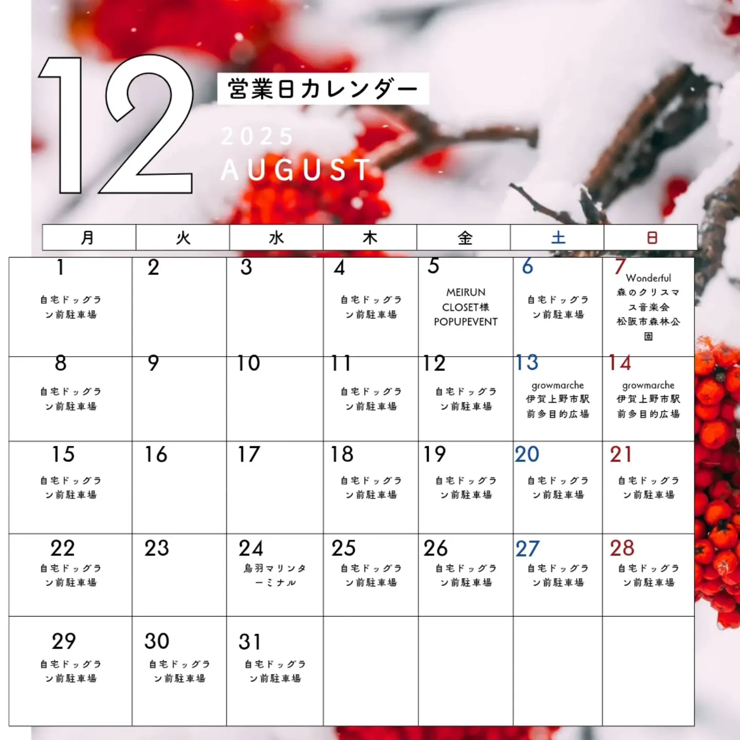 12月の出店予定(^^♪